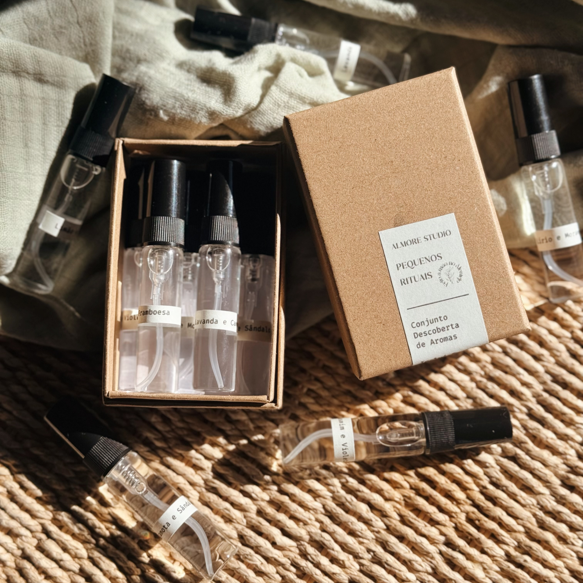 - 5 mini sprays (5ml cada) para descobrir os nossos aromas - preparados à mão com óleos de fragrância de alta qualidade - perfeitos para perceberes qual aroma queres na versão maior - ideais para criar momentos simples de pausa ou para perfumar o teu dia - inclui um benefício especial para levares o teu aroma favorito para a versão maior